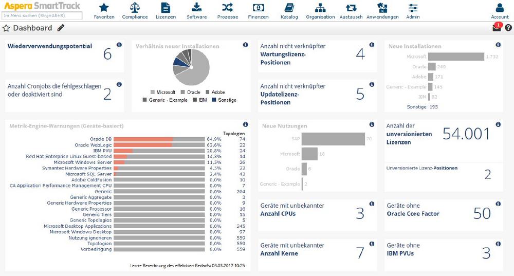 - Mit der Tell-me-more-Compliance-Funktion wird unter Berücksichtigung aller Einflussfaktoren die Entstehung des Lizenzbedarfs für jedes einzelne Produkt leicht verständlich dargestellt und es dem Benutzer erstmals ermöglicht, die Komplexität aktueller Lizenzmetriken einfach nachzuvollziehen.