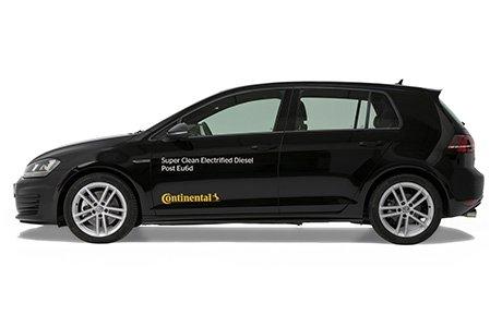 Allein auf die Nacheinspritzung will Continental jedoch nicht setzen, da sich dadurch der Kraftstoffverbrauch um etwa vier Prozent erhöhen würde. Daher applizierte der Zulieferer ein 48-Volt-Hybridsystem, das auf einem riemengetriebenen Starter-Generator basiert. Der verwendete Elektromotor mit einer Spitzenleistung von rund 15 Kilowatt ermöglicht es nicht nur, Bremsenergie wiederzugewinnen und als Strom in einem kleinen Lithium-Ionen-Akku zu speichern. Vielmehr unterstützt es den Verbrennungsmotor kurzzeitig auch in Phasen stärkerer Beschleunigung. Dies senkt die Stickoxidemissionen, die bei einem Dieselmotor besonders hoch ausfallen, wenn sehr schnell sehr viel zusätzliche Leistung abgerufen wird. Da ein geringerer Anteil der Leistung durch den Verbrennungsmotor erzeugt werden muss – Ingenieure sprechen dabei von „Phlegmatisierung“ –, lassen sich durch das 48-Volt-System weitere drei Prozent gegenüber der Nacheinspritzung einsparen. Gleichzeitig sinken die CO2-Emissionen zusätzlich um rund drei Prozent.