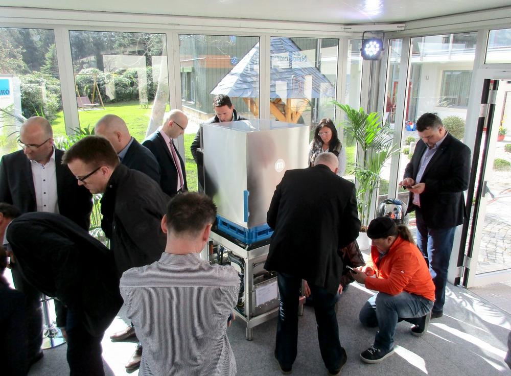 Ergonomische Faktoren der Maschine schonen die Gesundheit des Personals, während die Betriebskosten sinken und Zeit eingespart wird. Die neue Umsetzung der Haubenautomatik macht den schweren Bügel hinfällig, während auch ungesunde Dreh- und Hebebewegungen der Vergangenheit angehören. Davon konnten sich die Teilnehmer ein Bild machen und die Maschine selbst bedienen. Durch viele bedachte Neuerungen wurden im Praxisalltag 30 Minuten eingespart: Wertvolle Zeit, die anderen Arbeiten zugutekommt, etwa der Essenszubereitung. Das wertet den Arbeitsplatz deutlich auf, darin waren sich die Besucher der Roadshow einig.