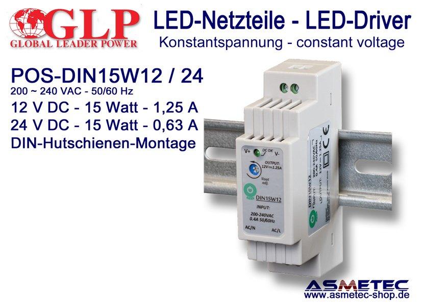 LED-Netzteil GLP POS-DIN 15W12, 12 VDC, 15 Watt, DIN-Hutschiene