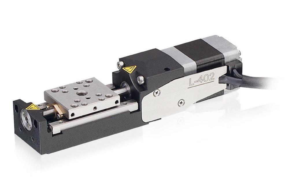 Physik Instrumente (PI) hat mit dem L-402 jetzt einen Miniatur-Lineartisch im Programm, der lediglich 22,5 mm schmal ist und sich dadurch auch bei beengten Einbauverhältnissen gut integrieren lässt. Der obendrein auch noch preisgünstige Präzisionstisch verfährt bis zu 1 kg schwere Lasten gleichmäßig und mit einer Wiederholgenauigkeit bis zu 0,5 μm. Der maximale Stellweg beträgt 13 mm, die Höchstgeschwindigkeit 5 mm/s. Zwangsgeführte Kreuzrollenlager sorgen für hohe Führungsgenauigkeit und lange Lebensdauer. Der Miniatur-Lineartisch wird wahlweise mit DC- oder Schrittmotor angetrieben. Versionen mit spielfrei vorgespannter Kugelumlaufspindel gibt es auf Anfrage; gleiches gilt für Vakuum-Ausführungen bis 10-6 hPa. Bei Bedarf lassen sich mehrere Miniatur-Lineartische ohne Adapterplatten zu XY- und XYZ-Stapeln kombinieren.