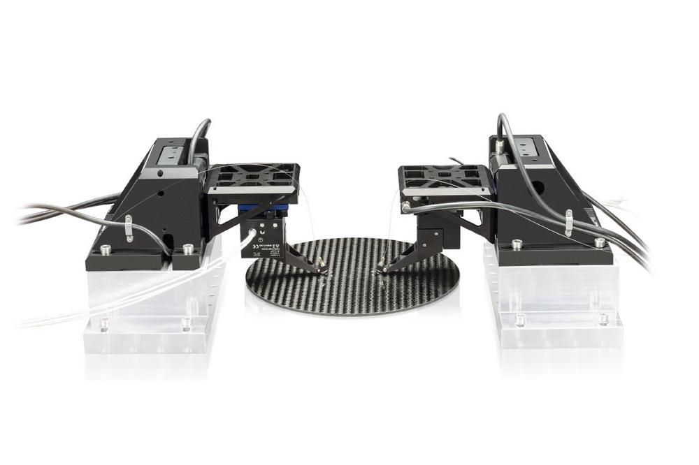 Both systems are available for either single-sided or double-sided positioning tasks. The scope of delivery includes a high-performance digital controller (E-712), firmware routines with algorithms for very fast positioning, and an extensive software package. The matching hexapod controller (C-887) is also supplied with the parallel-kinematic set-up.