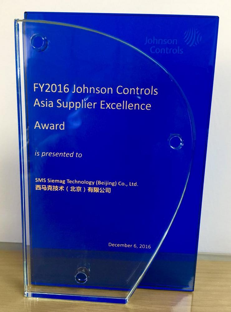 Being very satisfied with SMS group’s cooperation, and manufacturing efficiency and quality, Johnson Controls has presented SMS group with the “Asia Supplier Excellence Award”. This award is additional incentive for the team of SMS group to work closely with the international team of Johnson Controls experts to also complete the manufacture and shipment of the other two tandem cold mills according to schedule.