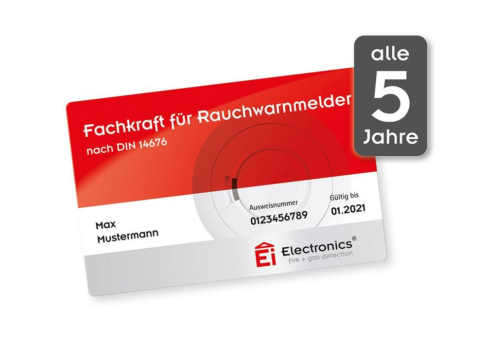 Zur gründlichen Wissensauffrischung kann alternativ der ganze Schulungstag ab 09:00 Uhr zum Gesamtpreis von 150 Euro zuzüglich Mehrwertsteuer gebucht werden. In beiden Varianten werden aktuelle Normenkenntnisse sowie herstellerunabhängige Informationen mit hohem Praxisbezug vermittelt. Jeder Teilnehmer erhält nach bestandener Prüfung ein TÜV-Zertifikat sowie einen Ausweis und wird kostenlos in den Fachkraft-Finder von Ei Electronics aufgenommen. Dort können gewerbliche und private Auftraggeber einen Fachbetrieb in ihrer Nähe finden.