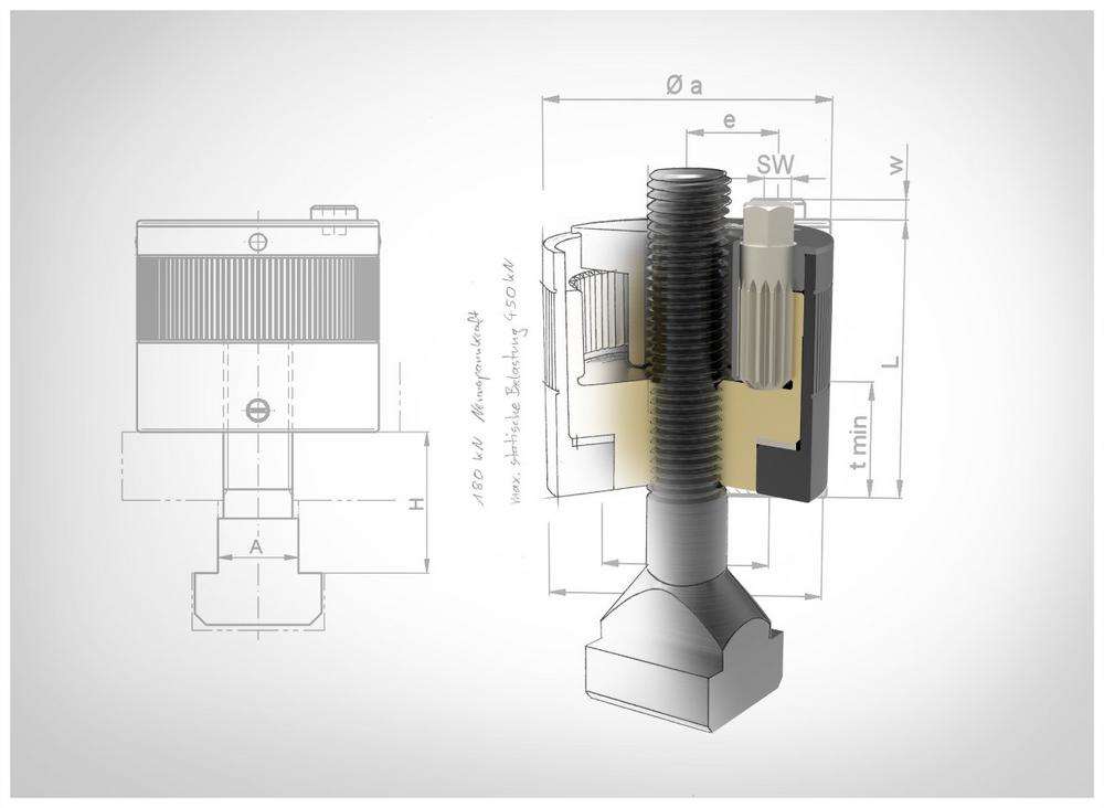 Die Kraftspannmuttern MDA stehen für Gewindegrößen von M12 bis M48 zur Verfügung und können bis zu 180kN Spannkraft aufbringen.