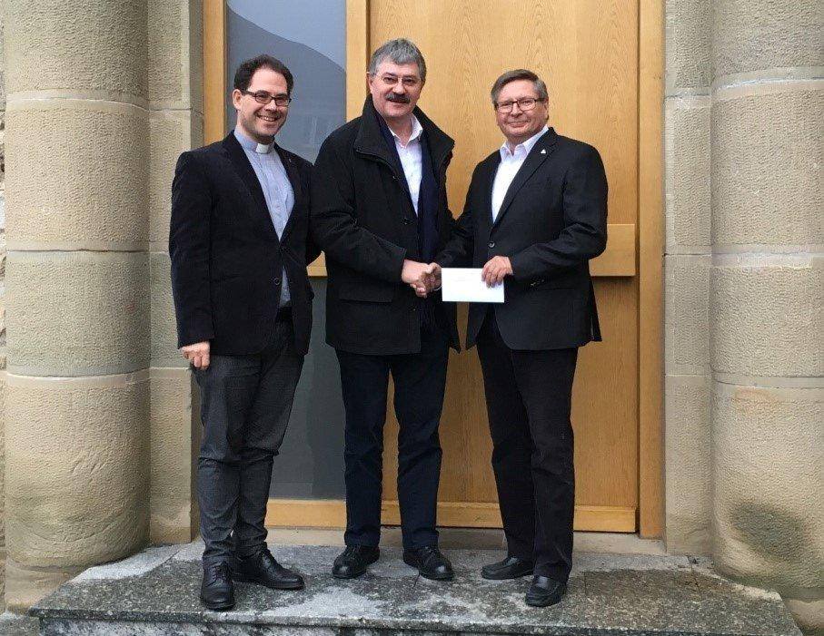 Klaus Spitzley, Vorstand a.D. der WITTENSTEIN SE und Stiftungsrat der Förderstiftung St. Josefspflege Mulfingen, überreichte kürzlich einen entsprechenden Scheck an Johann Dirnberger, Geschäfts-führer der St. Josefspflege Mulfingen gGmbH, und Pfarrer Ingo Kuhbach, Vorstand der Förderstiftung der St. Josefpflege Mulfingen.