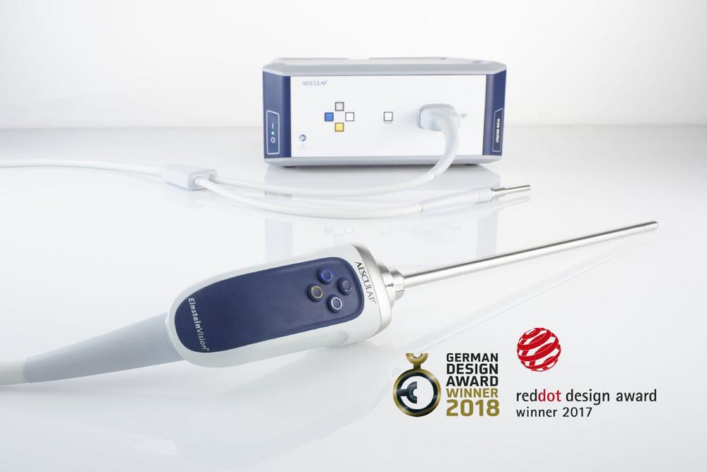 Nach mehrtägiger Bewertung über 5000 eingereichter Produkte aus aller Welt würdigte die Fachjury des German Design Awards die Gestaltung der 3D EinsteinVision® 3.0 Kameraköpfe von Aesculap mit dem Qualitätssiegel in der Disziplin „Excellent Product Design 2018“. „Wer sich hier gegen die hochkarätige Konkurrenz durchsetzt, hat erfolgreich bewiesen, zu den Besten zu gehören“, so das Jurykomitee. Die Preisverleihung fand im Rahmen der internationalen Konsumgütermesse „Ambiente“ in Frankfurt am Main am 9. Februar 2018 statt.
