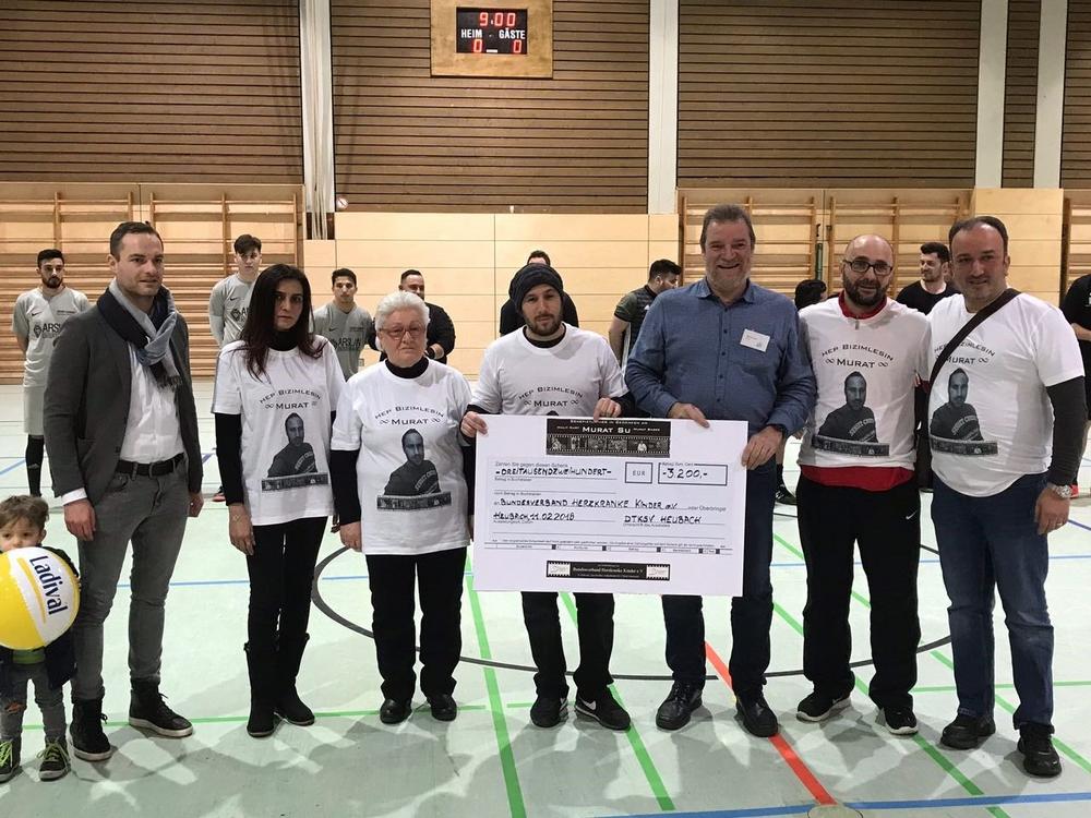 Die Spende von 3.200 Euro (siehe Foto) wurde noch ergänzt durch zusätzliche Spenden und Bareinnahmen, so dass am Ende 4.250 Euro an den Bundesverband Herzkranke Kinder (BVHK) gingen. Vielen, vielen Dank an alle Beteiligten und insbesondere an die Familie von Murat Su. Der BVHK freut sich sehr über diese berührende Aktion und das fantastische Engagement. Mit der Spende werden u.a. Sportangebote für herzkranke Kinder und Jugendliche finanziert.