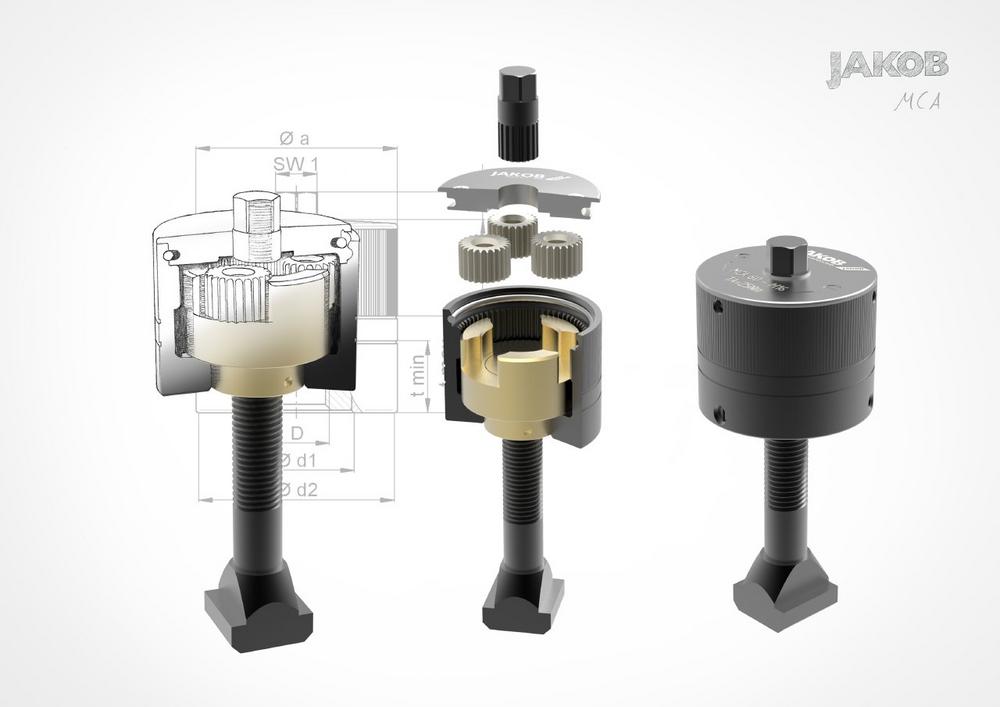 Die Kraftspannmutter MCA basiert auf dem Vorgängermodell MC. Äußerlich fällt das veränderte Design und die reduzierten Außenmaße zuerst auf. Aber auch im Innenleben hat sich viel geändert. Die Lagerung der Planetenräder wird nun durch stabile Klauen anstelle von Bolzen bewerkstelligt. Damit konnte Platz für deutlich größere Einschraubgewinde geschaffen und der Leistungsbereich um bis zu 100% gesteigert werden. Die Werkstoffausführung aus Vergütungsstahl sowie die vor Korrosion schützende Oberflächenbeschichtung garantieren eine lange Lebensdauer der Spannelemente. Die Dichtigkeit der Antriebsmechanik und der Spritzwasserschutz konnten ebenfalls gesteigert werden. Die mechanische Spannmutter MCA ist unter normalen Betriebsbedingungen wartungsfrei und in Sonderausführung bis 400°C einsetzbar.