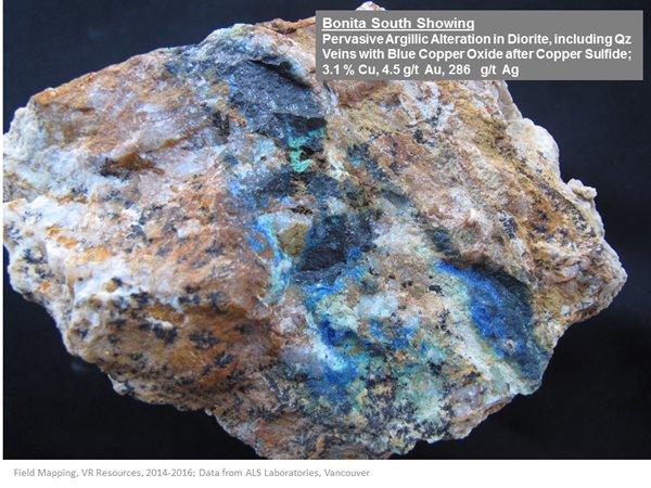 Mehr als vier Jahre lang hat das Unternehmen strukturelle, geophysikalische, geochemische und lithologische Informationen auf dem 5 mal 6 Kilometer großen Explorationsgebiet 150 Kilometer nordwestlich von Reno gesammelt. Im vergangenen Jahr steuerten drei Bohrungen weitere wichtige Erkenntnisse bei. Die Untersuchungen haben zuletzt zu der Hypothese geführt, dass auf Bonita zwei klar abgrenzbare, nur durch Erosionsgestein bedeckte, fast kreisrunde Strukturen existieren, die als so genannte IOCG Brekzien interpretiert werden. Die Abkürzung „IOCG“ steht für „iron oxide copper gold“, also für das gemeinsame Vorkommen von Eisen, Kupfer und Gold. Bekannte IOCG Projekte wie Carrapateena in Australien (OZ Minerals) sind für ihre Größe und die Kontinuität ihrer Vererzung berühmt. Die beiden Ziele auf Bonita, Hemco und Corral genannt, haben jeweils einen Durchmesser von rund einem Kilometer und reichen vermutlich ebenso tief. Das schließt man aufgrund der Messung der Leitfähigkeit.