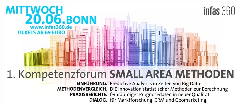 Small Area Methoden sind innovative Analyseinstrumente mit Ursprung in Amerika, die in Zeiten von Big Data auch in Deutschland zunehmend Beachtung finden. Sie ermöglichen unter Einbeziehung von mikrogeografischen Daten effizientere Potenzialberechnungen und feinräumige Prognosen auch ohne umfassende Erhebungen. Am 20.6. lädt infas 360 zum ersten Kompetenzforum Small Area Methoden (SAM) nach Bonn.
