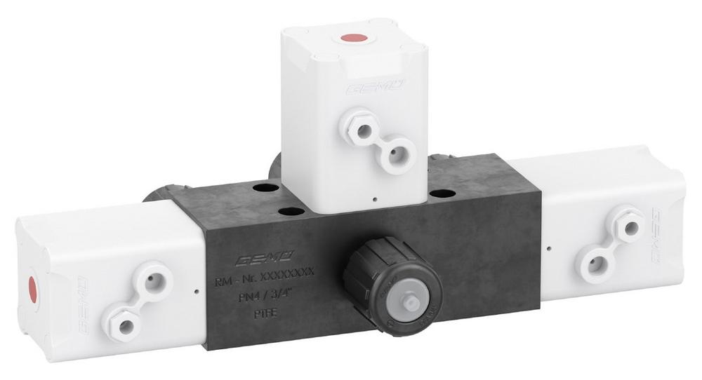 GEMÜ designs the specified multi-port valve blocks on a case-by-case basis and manufactures them according to customer requirement. The conductive valve body made of PTFE makes it possible to combine various connections in different nominal sizes with each other. In addition, manual or pneumatic actuator versions and sensor systems can be integrated optionally.
