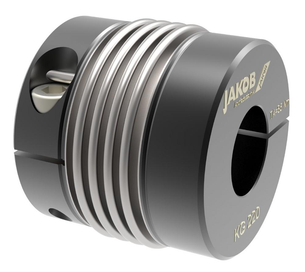 The KG series, optionally also available in stainless steel as series "KG-VA", meets high requirements. The transmission is made via torsionally rigid, two- or four-shaft stainless steel bellows, the couplings are available for torque ranges of 5 – 1300 Nm as well as shaft diameters of 6 – 90 mm. It can be used at temperature ranges from -40 ° C to + 350 ° C.