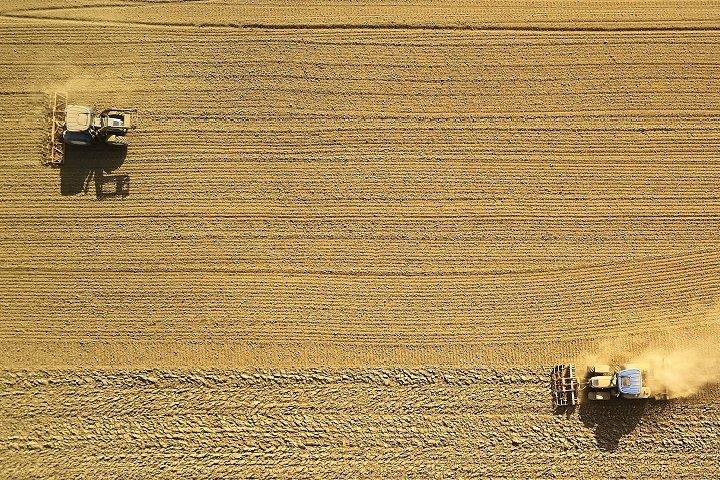 Traktoren und Mähdrescher fahren autonom. Sensoren an den Maschinen messen die Bodenbeschaffenheit und sammeln wichtige Daten wie Feuchtigkeitsgehalt oder wie viel Getreide an welcher Stelle geerntet wurde.