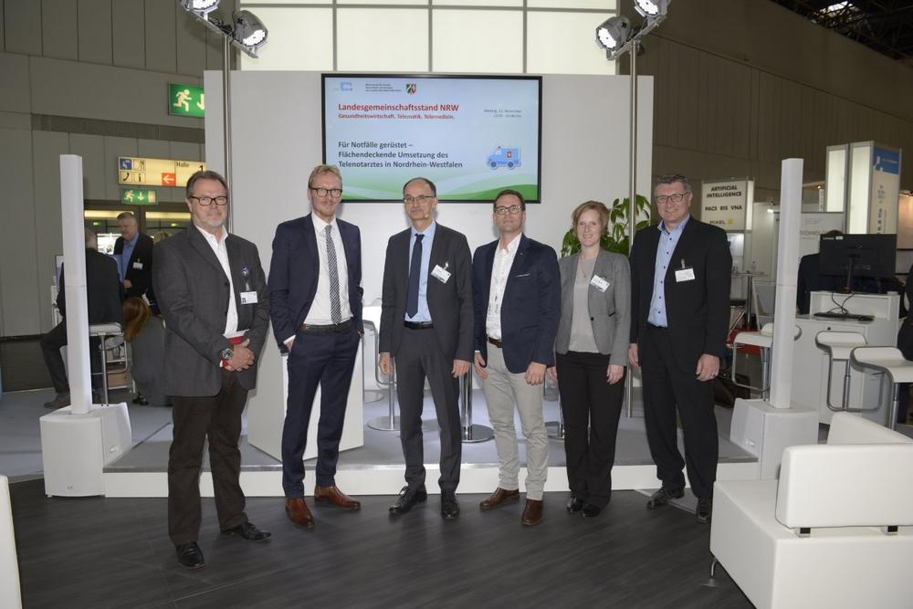 Am 12. November fand eine Podiumsdiskussion zum Thema Errungenschaften und Erfahrungen aus vier Jahren Telemedizin statt – mit den Teilnehmern Bernd Schnäbelin, Leiter des Referats Rettungswesen und Rehabilitation im Ministerium für Arbeit, Gesundheit und Soziales des Landes NRW, Dirk Ruiss, Leiter der Landesvertretung NRW des Verbandes der Ersatzkassen e.V. (vdek), Dr. med. Gerhard Nordmann, 1. Vorsitzender des Vorstands der Kassenärztlichen Vereinigung Westfalen-Lippe, Dr. Marie-Thérèse Mennig, Geschäftsführerin P3 telehealthcare GmbH, Priv.-Doz. Dr. med. Stefan Beckers, MME, Ärztlicher Leiter des Rettungsdienstes der Stadt Aachen und Ralf Rademacher, Geschäftsführer des Rettungsdienstes Kreis Heinsberg unter der Moderation von Rainer Beckers, Geschäftsführer des Zentrums für Telematik und Telemedizin GmbH (ZTG).