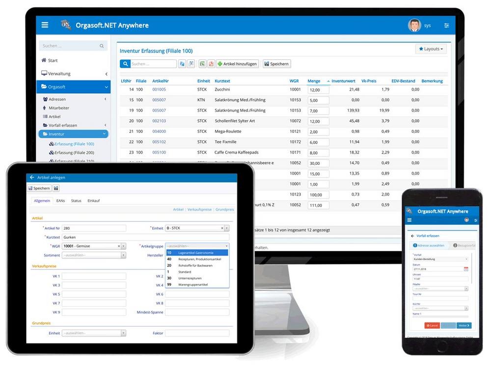 Orgasoft.NET Anywhere ist zusätzlich zur bewährten Desktop-Anwendung des branchenunabhängigen Warenwirtschaftssystems Orgasoft.NET einsetzbar. Dass die Programmierung der Web-Anwendung zum Firmenjubiläum abgeschlossen werden konnte, freut Chef-Entwickler und Geschäftsführer Jürgen Erhardt: „Orgasoft.NET Anywhere ermöglicht warenwirtschaftliches Arbeiten, egal ob man gerade im Büro sitzt oder unterwegs ist. Diesen Wunsch haben unsere Kunden vermehrt geäußert und wir sind ihm gern nachgekommen. Als positiven Nebeneffekt bringt Orgasoft.NET Anywhere mit sich, dass potentiell mehr Mitarbeiter im Unternehmen oder in den Filialen Zugang zur Warenwirtschaft bekommen, weil die Installation auf dem PC entfällt. Alles, was man braucht, ist ein internetfähiges Gerät mit Browser.“