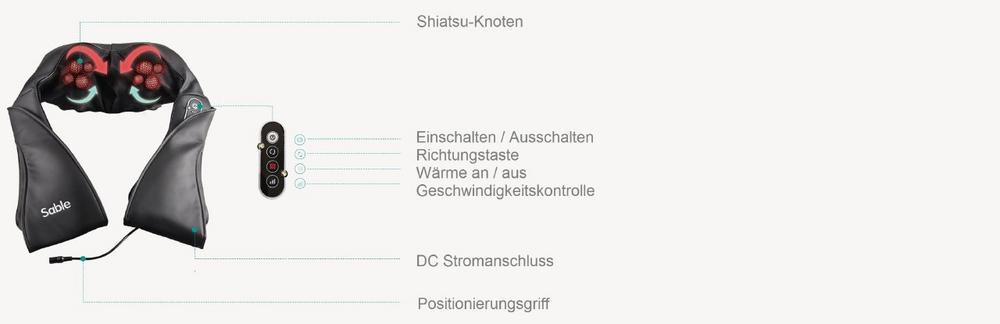 Das umweltfreundliche Sable Shiatsu-Massagegerät der Sunvalley-Group macht Wellnessmassagen für den ganzen Körper möglich. Ob Nacken, Rücken, Schultern, Bauch, Beine oder Füße: ergonomisch passen sich die acht Knetbälle allen Körperregionen an, stimulieren Akupunkturpunkte und sorgen für eine Linderung von Stress und Muskelschmerzen.