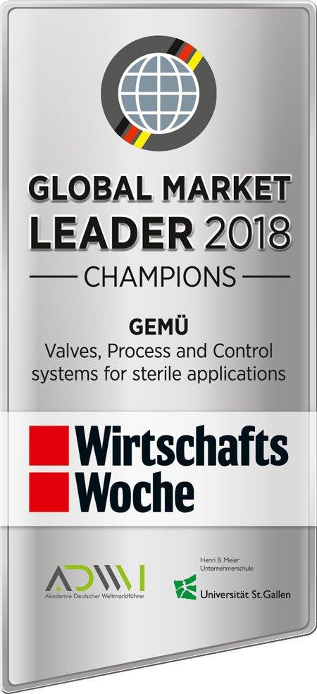 For the third time in succession, the German business magazine WirtschaftsWoche has awarded the family-owned enterprise GEMÜ Gebrüder Müller Apparatebau GmbH & Co. KG the WirtschaftsWoche quality seal of "Global Market Leader", declaring them "champions" of 2018. In doing so, WirtschaftsWoche has recognised GEMÜ’s inclusion in the global market leader index in the segment "Valves and automation components: Valves, Process and Control systems for sterile applications".