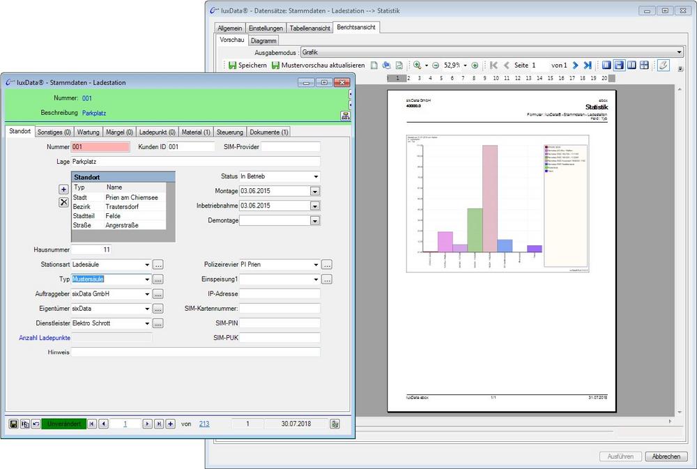Zunächst wurde die Bestandsverwaltung durchgeführt. Anschließend setzte sixData die Erfassung und Behebung von Störungen um, bevor die Planung und Ausführung von Wartungen erfolgte. Basis der schnellen Realisierung war die gute Vorarbeit des Betreibers: Er stellte sixData bereits sehr detailliert Daten über die internen Prozesse zur Verfügung, unter anderem zur Neuinstallation, Störungserfassung und Wartungsplanung der einzelnen Ladestationen. Der Softwarespezialist wertete diese aus und übertrug sie auf luxData.ebox. „Teilweise konnten wir diese Daten durch luxData.ebox auch verfeinern. Das liegt daran, dass mit unserer Lösung die Ladestationen noch umfangreicher und detaillierter dokumentiert werden können“, führt Mühlberger aus.