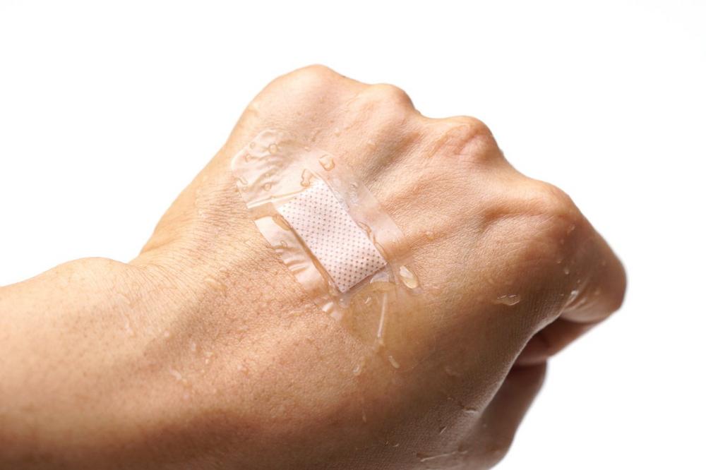 Geklebt werden all diese Pflaster auf das grösste menschliche Organ, die Haut. Die Haut ist eine sehr spezielle Oberfläche auf der es etwas zu befestigen gilt. Die Fläche bei einem erwachsenen Menschen beträgt ca. 1.7 m2 und wiegt zwischen 10 – 14 kg. Sie besteht aus mehreren verschiedenen Schichten, wobei die Epidermis (Oberhaut) die äusserste Hautschicht ist. Die Haut hat viele verschiedene Aufgaben. Unter anderem dient sie dem Stoffaustausch. Sprich über die Körperoberfläche werden in unterschiedlichem Masse Stoffe aus der Umgebung aufgenommen oder abgegeben. Ein typisches Beispiel ist das Schwitzen beim Sport. Schweissdrüsen produzieren Schweiss um den Körper vor Überhitzung zu schützen. Die Haut ist auch ein sehr individuelles Organ. Je nach Alter des Menschen, Klimazone in welcher er lebt und der Lebensgewohnheiten verhält sie sich anders. So kann es sein, dass ein Klebstoff für ein Pflaster in Europa wunderbar funktioniert. In Asien hingegen hält es zu stark und führt zu Hautirritationen beim Entfernen.