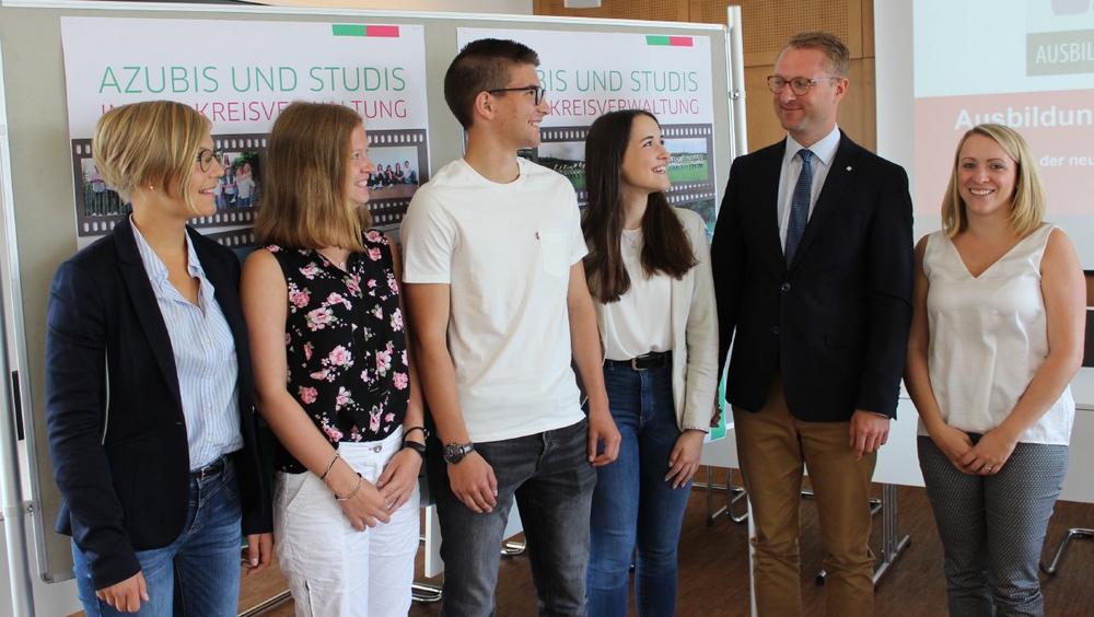 „Alles, alles Gute für die kommenden drei Jahre“ wünscht Erster Kreisbeigeordneter Dr. Jens Mischak, der die neuen Auszubildenden offiziell begrüßt. „Sie haben sich aus einer Vielzahl von Bewerbern durchgesetzt, das ist ein gutes Zeichen.“ Dr. Mischak ermuntert die jungen Leute, sich bei Fragen auch an die Kreisspitze zu wenden. „Die Tür zum Landrat und zu mir steht offen. Wenn Ihnen etwas auffällt, was man verbessern könnte, sagen Sie uns das.“ Die Verwaltung ist ein Dienstleiter, sagt Dr. Mischak, „wir arbeiten lösungsorientiert und pragmatisch“.
