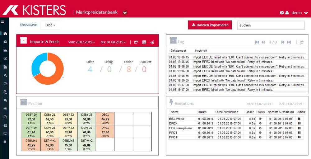 Die Software erledigt hochautomatisiert den gesamten Prozess vom Import der Preisdaten aus unterschiedlichen Quellen über die Datenablage und Berechnung abgeleiteter Informationen/Zeitreihen bis zum Bereitstellen der Daten für andere Software (Schnittstellen) und Anwender (Visualisierung). „Unsere Kunden wissen insbesondere die Import-Überwachung und die Plausibilisierung der Importdaten zu schätzen: Denn sollte es zu einem Fehler – wie unvollständige oder fehlerhafte Daten – kommen, benachrichtigt die Marktpreisdatenbank den Anwender und unterstützt ihn bei der Fehlerbehebung“, erläutert Dr. Schell. Standardschnittstellen zu allen relevanten Datenquellen wie EEX, EPEX, Trayport, WattSight, Reuters, ENTSO-E stehen „out of the box“ zur Verfügung. Die Marktpreisdatenbank ist flexibel erweiterbar und ermöglicht Datenimporte aus beliebigen Quellen. Sie historisiert sämtliche Daten und ist revisionssicher.