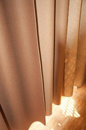 Filzvorhänge halten die wohlige Wärme im Raum, Lärm und fremde Blicke bleiben draußen. Ob in schlichten Naturtönen oder als farbiger Blickfang: Die monofaktur liefert individuelle Maßanfertigungen. Für die Produktion verwendet die Manufaktur aus Niedersachsen farbigen Design- und ungefärbten Wollfilz. Dank der vielfältigen Bearbeitungsmöglichkeiten des edlen Naturprodukts kommt der Filz vielseitig zum Einsatz. So entstehen stilvolle Akustik-, Flächen oder Thermovorhänge als Entreeschleuse, Raumtrenner, Verdunkelung oder Designobjekt in privaten und öffentlichen Räumen. Neben den beliebten Vorhangkreationen entstehen in der Werkstatt auch hochwertige Teppiche, Kissen, Akustikelement, Bank- und Stuhlpolster aus Filz.
