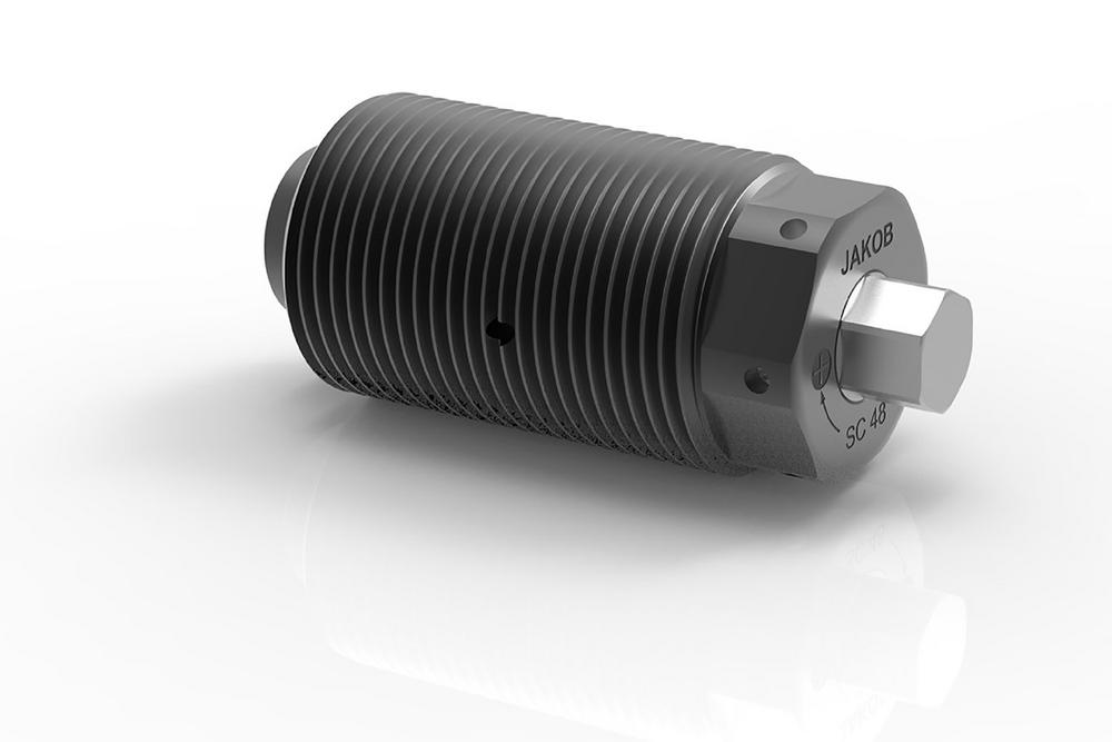 In addition to the proven sizes of M36, M48, M64 and M80, JAKOB also offers a special version SC 100. It can generate clamping forces of up to 250 Nm with just 130 Nm of torque. The power clamping screw is operated with a 14 mm Allen key. For safety’s sake, and in order to obtain reproducible values, the operation is best done with a torque wrench.