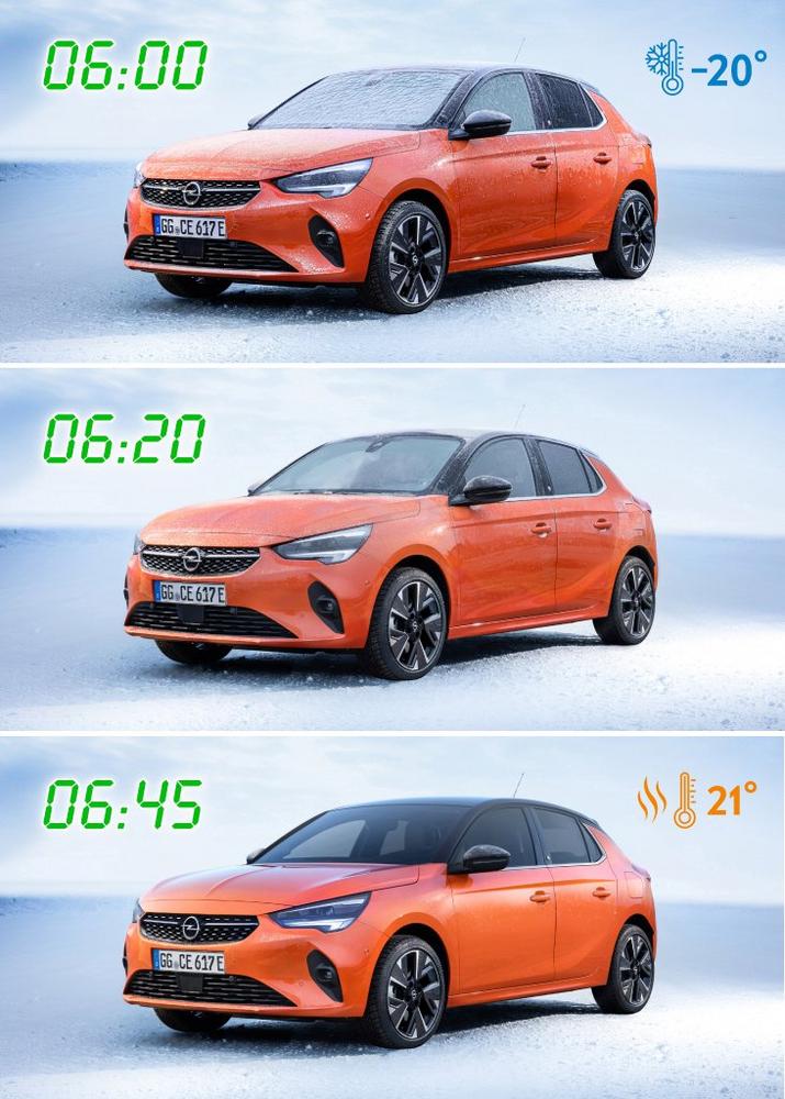 Die Bedienung ist denkbar einfach: Nutzer des Corsa-e wählen über die myOpel App ihr Fahrzeug an oder schalten alternativ die Vortemperierung direkt im Cockpit ein. Über das Display lässt sich dies auch programmieren. Innerhalb weniger Minuten erreicht der Innenraum so nicht nur Wohlfühltemperatur, sondern bei Frost sind auch die Scheiben eisfrei. Bei einer extremen Außentemperatur von -20 Grad Celsius dauert es maximal 45 Minuten, bis sich der Innenraum des Corsa-e angenehm erwärmt hat – komfortabel für die Passagiere und ideal für die Leistungsfähigkeit sowie Lebensdauer der Batterie.