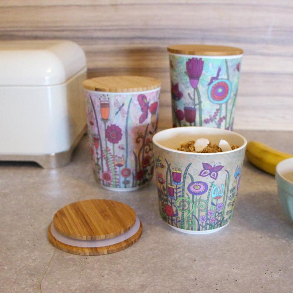 Über die Produkte: Die im 3er Set, in einer limitierten Auflage von 1.500 Stück erhältlichen, Aufbewahrungsdosen by Rollin’Art bringen gute Laune in Küche, Wohn,- Schlaf,- oder Badezimmer. Zur aromafrischen, längeren Aufbewahrung von Lebensmitteln in der Küche für Schrank oder Regal besitzen die aus hochwertigen, nachhaltigen Bambusfasern gefertigten Dosen einen luftdichten Silikonring. Für den Schrank viel zu schade, eignen sie sich aber auch als dekorative Elemente im ganzen Haus.