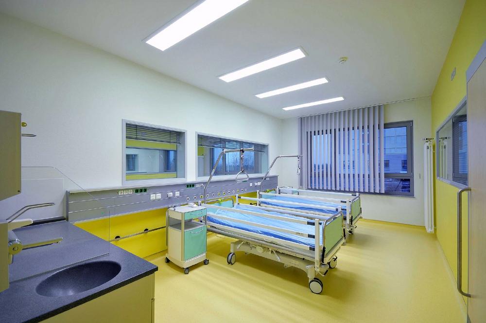 Die Module für die Intensivstationen werden in den Werken von KLEUSBERG mit den wichtigen Medizintechnikkomponenten und der erforderlichen Infrastruktur vorgerüstet. Durch diesen Grad der Vorfertigung kann anschließend ein Gebäude in Modulbauweise wesentlich schneller als z. B. ein Massivgebäude errichtet werden. Aber auch hier ist natürlich eine bedarfsgerechte Planung unter Einbeziehung der örtlichen Gegebenheiten zwingend erforderlich. Solche hochsensiblen Klinikbereiche lassen sich schon unter Hygienegesichtspunkten nicht in wenigen Tagen aus dem Boden stampfen. Daher hat KLEUSBERG eine Komplett-Lösung konzipiert, die sich an eine bereits realisierte und erprobte intensivmedizinische Station anlehnt, und die dank komplett vorliegender Statik, Baubeschreibung sowie haus- und medizintechnischer Einrichtung mit einem Zeitvorteil von über 2 Monaten realisieren werden kann.