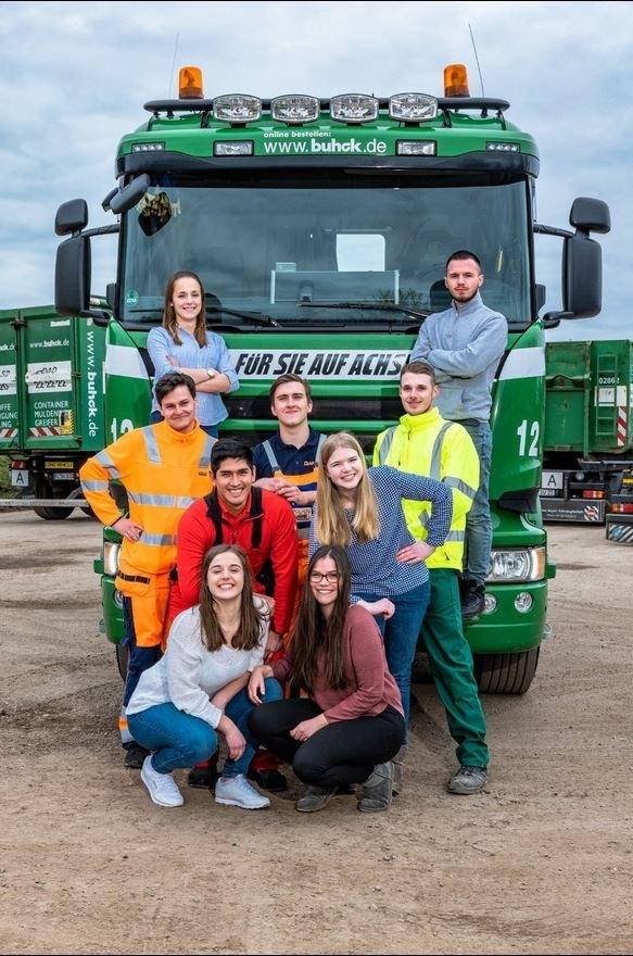 Die Buhck Gruppe bildet jährlich zwischen 15 – 20 neue Azubis aus, insgesamt absolvieren derzeit 48 junge Menschen ihre Ausbildung bei Buhck. Die Ausbildungsberufe sind dabei sehr vielfältig: Neben LKW-Fahrern, Fachkräften für Rohr-, Kanal- und Industrieservice, Geomatikern und Fachkräften für Kreislauf- und Abfallwirtschaft werden jedes Jahr Kaufleute für Büromanagement ausgebildet. In diesem Jahr ist zudem der Ausbildungsberuf Fachinformatiker für Systemintegration dazugekommen. Aber auch ein duales Studium ist bei der Buhck-Gruppe möglich: In Kooperation mit der DHSH in Lübeck oder der HSBA in Hamburg bildet das Unternehmen zum Bachelor of Science in BWL aus.