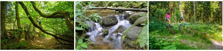 Große und kleine Wasserratten erwarten auf dem Quellenerlebnispfad wilde Wasserläufe, beeindruckende Sturzquellen und stille Quellsümpfe. Auf etwa drei Kilometer Länge führt „Quelli“ die blaue Libelle die Besucher über 16 Stationen am schäumenden Wildbach entlang. Entdecker und Forscher halten unterwegs nach geheimnisvollen Quellnymphen Ausschau, lassen selbst kleine Quellen entstehen oder experimentieren mit dem Wasserrad. Eine urige Hütte mit Bänken und Brunnen lädt zum Picknick ein.