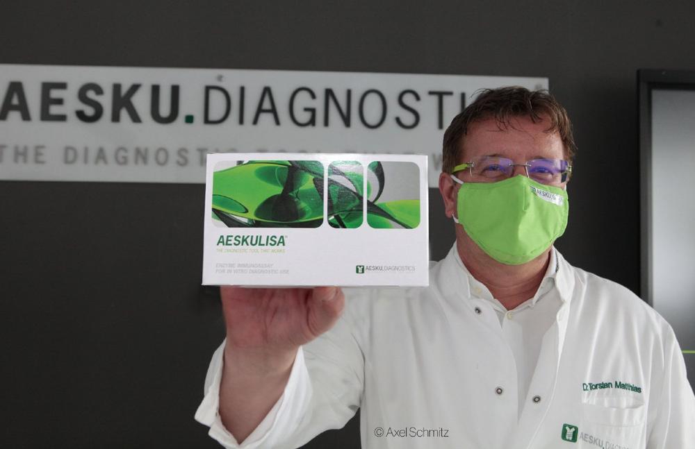 AESKU fertigt an seinem Stammsitz in Wendelsheim derzeit 300.000 Tests täglich. Um die Produktion aufzubauen nutzte man zunächst verschiedene Patienten-Proben positiver PCR-Tests aus Kliniken im In- und Ausland. Solche PCR-Tests bilden derzeit den Gold-Standard der klinischen Diagnostik, also der Feststellung ob jemand das Virus in sich trägt oder nicht. Die ELISA-Antikörpertests gegen die verschiedenen Antikörperklassen hingegen, lassen genau differenzieren ob jemand aktiv aber symptomlos erkrankt ist, oder Antikörper in sich trägt die auf eine zurückliegende Infektion hinweisen.