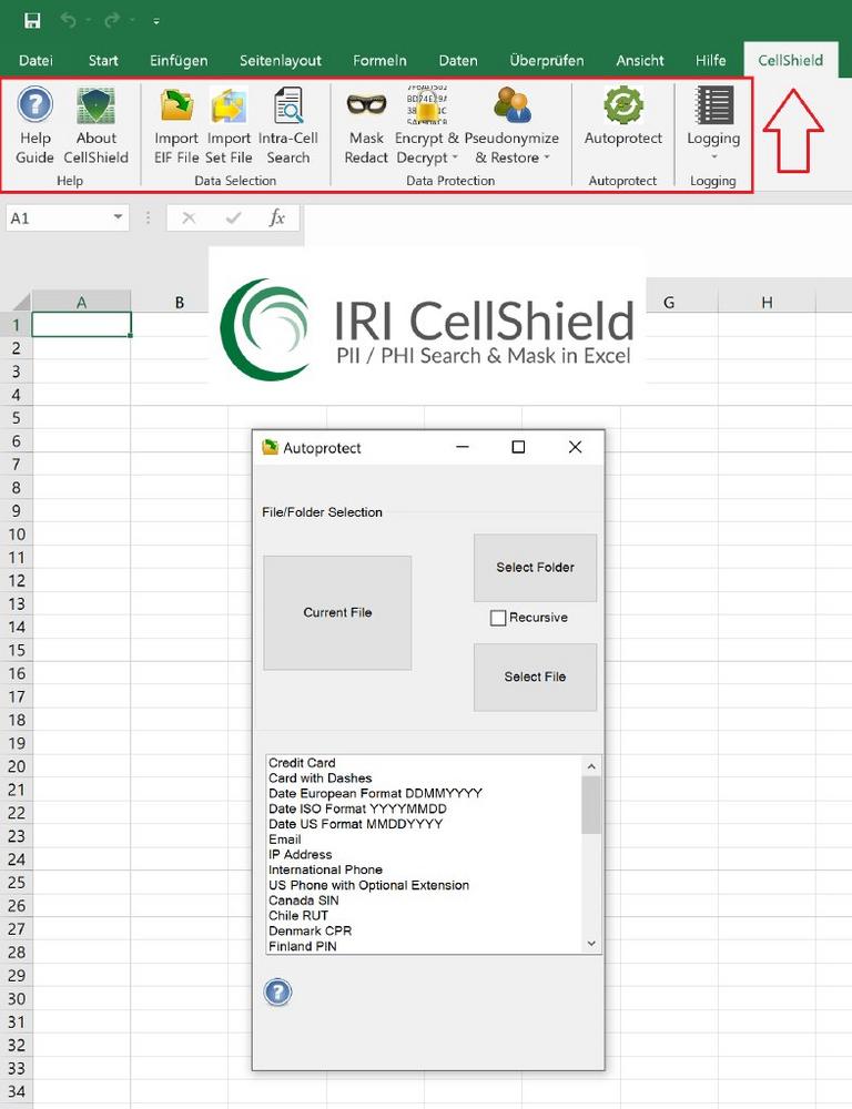 Auditierung: Erstellen Sie automatisch einen sicheren Protokolleintrag für den Schutz, der auf jedes im Bericht identifizierte Muster angewendet wird. Sie können auch IRI DarkShield verwenden, um zusammen mit vielen anderen unstrukturierten Datenquellen in Excel-Tabellen zu finden, zu maskieren und zu prüfen. DarkShield arbeitet jedoch nicht auf der Excel-Seite für diese Art von Ergonomie.