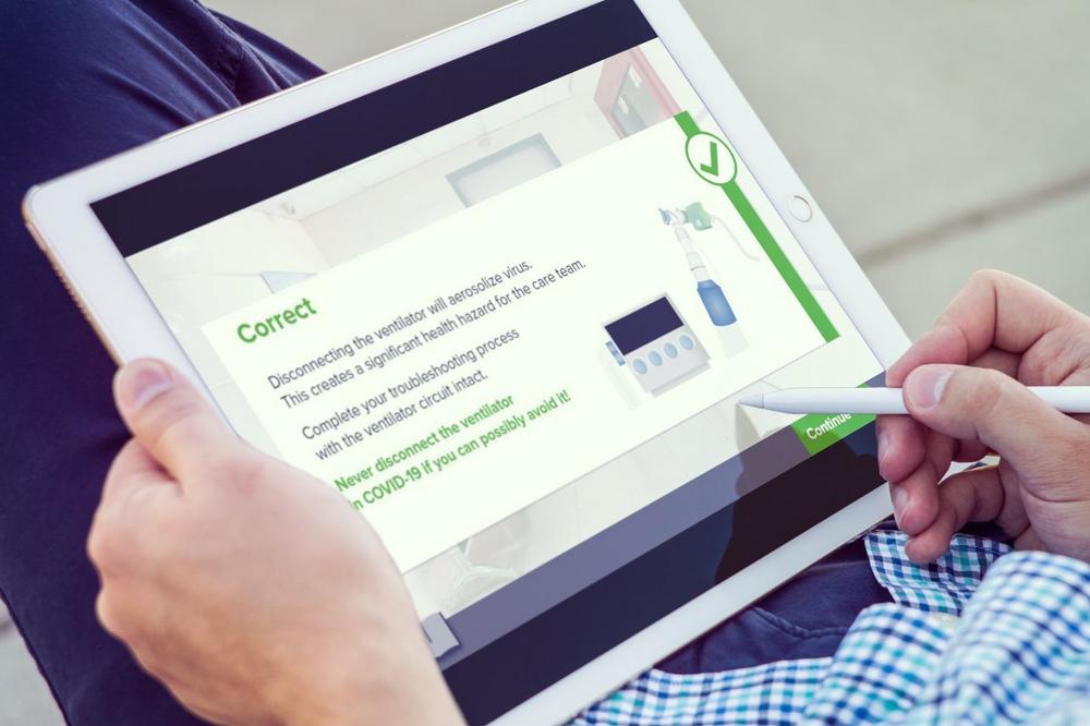 Für jedes Fallbeispiel gibt es eine kurze Beschreibung der Situation und der Lernziele. Im interaktiven Quiz trainieren Lernende beispielsweise, wie sie Standardprotokolle an die eintretenden COVID-19 Verläufe anpassen können. Sowohl Fehlentscheidungen als auch richtige Maßnahmen werden erläutert. Ergänzend stehen während der Interactive Case Files ein medizinisches Glossar und weitere Informationen zum Abruf bereit. So eignen sich die Lernenden das für sie relevante Wissen an.
