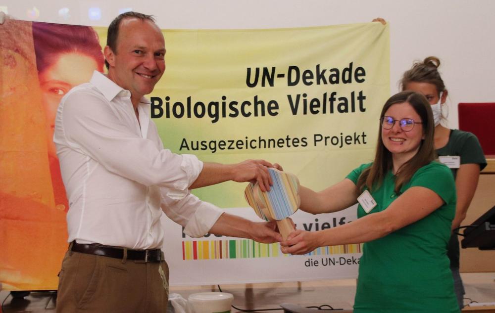 Das BUND-Projekt wurde 2019 ins Leben gerufen und schafft gemeinsam mit sächsischen Kommunen Flächen, die Wildbienen Nahrung und Lebensraum bieten. Die Vereinten Nationen erklären die Jahre 2011 bis 2020 zur UN-Dekade für biologische Vielfalt und ehren in diesem Zug das Engagement für Biodiversität. Umweltminister Günther überreicht die Auszeichnung an Maxi Weber, Projektkoordinatorin beim BUND. „Wir freuen uns sehr über diese Auszeichnung und die damit einhergehende Wertschätzung für unser Projekt. Durch die zusätzliche mediale Aufmerksamkeit erhoffen wir uns, noch mehr Menschen in Deutschland für den Wildbienenschutz begeistern zu können. Und nicht nur Menschen, sondern vor allem auch Kommunen, die so ihren wertvollen Beitrag für den Insektenschutz leisten können“, so Weber.
