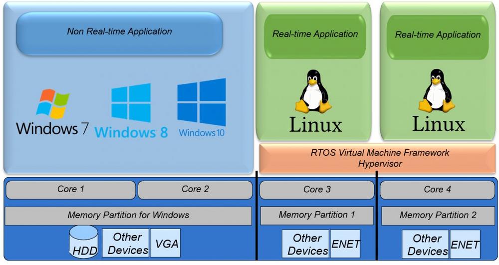 In addition, Windows and RT-Linux are securely isolated using MMU mechanisms, even more isolation can be achieved when enabling Intel Virtualization Technology. See: https://acontis.com/en/lxwin-7-0-06.html