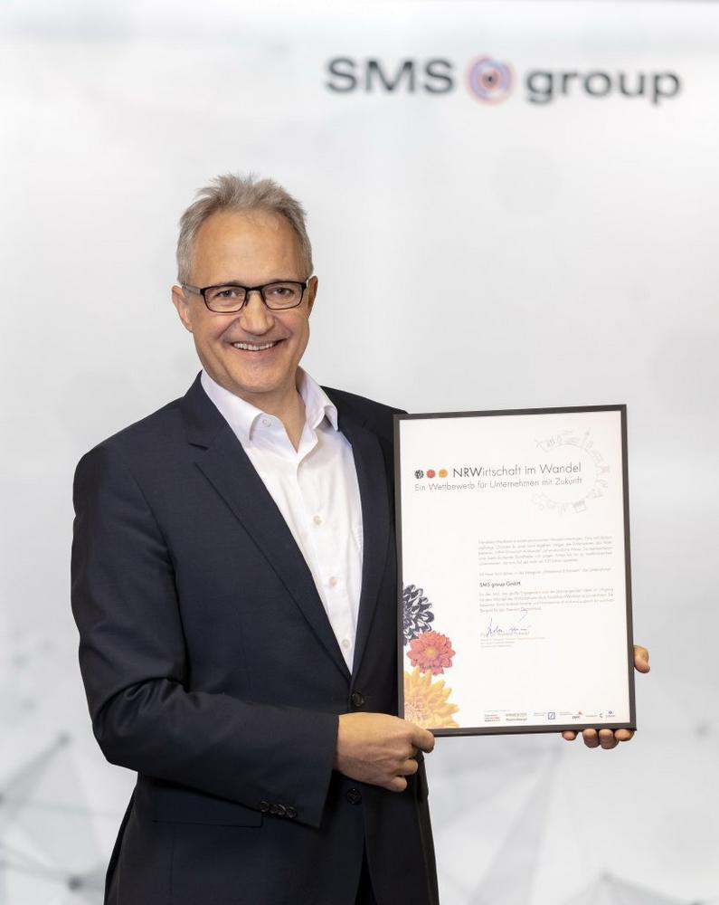 Als einer von drei Preisträgern in der Kategorie „Konzerne & Mittel-ständler“ wurde SMS group am 17.11.2020 innerhalb einer digitalen Preisträger-Laudatio von Wirtschaftsminister Prof. Dr. Andreas Pinkwart mit dem Preis „NRW-Wirtschaft im Wandel“ ausgezeichnet. Prof. Dr. Hans Ferkel, Mitglied der Geschäftsführung der SMS group (www.sms-group.com), hat die Auszeichnung während der digitalen Preisverleihung virtuell entgegengenommen.