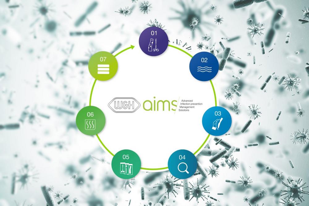 Antworten auf diese und viele weitere Fragen gibt W&H AIMS Step-by-Step auf dem Weg zu Ihrem individuellen Hygienemanagement. Das zuverlässige W&H-Produktportfolio bietet zudem die perfekte Ergänzung für die Umsetzung im Arbeitsalltag.