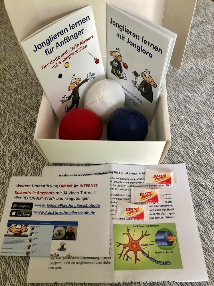 + 1 Jonglier-Anleitung "Jonglieren lernen mit Jongloro" mit 34 Wurf- und Fangübungen (36 Seiten)