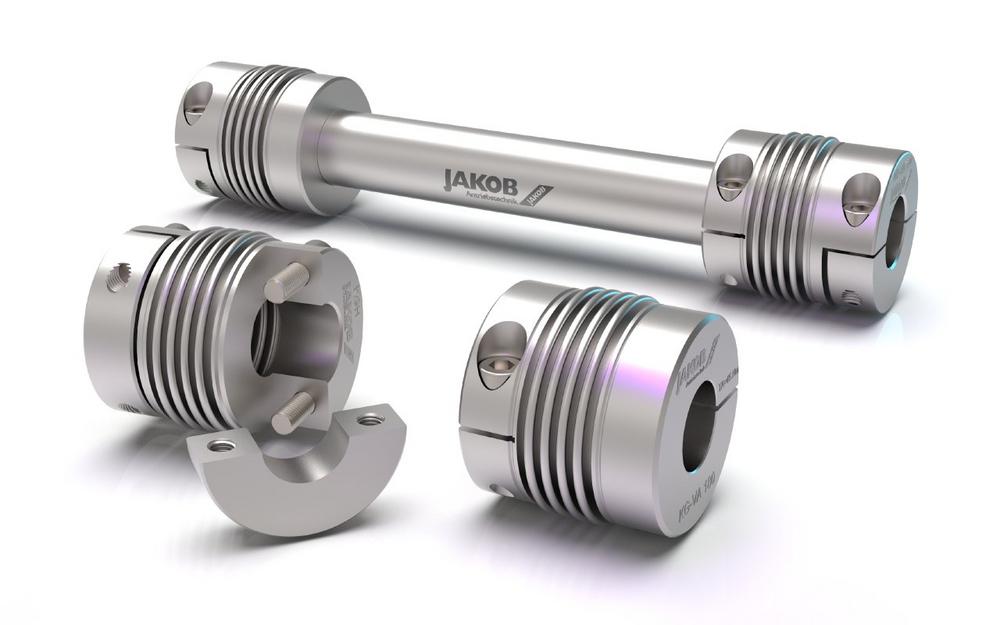 JAKOB Antriebstechnik now offers three stainless steel couplings as standard series. Including the metal bellows couplings KG-VA and KGH-VA as well as the WD-VA series of distance couplings, which is manufactured in the extremely easy-to-assemble split-hub design. Assembly and disassembly of the coupling is no longer a problem, even in confined installation conditions. The fixed hub halves are placed on the shaft and screwed with the loose half-shells. Especially in the case of fixed shaft journals, the service case can mean that the drive and / or output unit have to be dismantled in a complicated manner, which is thus dispensed with. Thanks to the stainless steel construction, it is also ideally suited for applications in the food sector.
