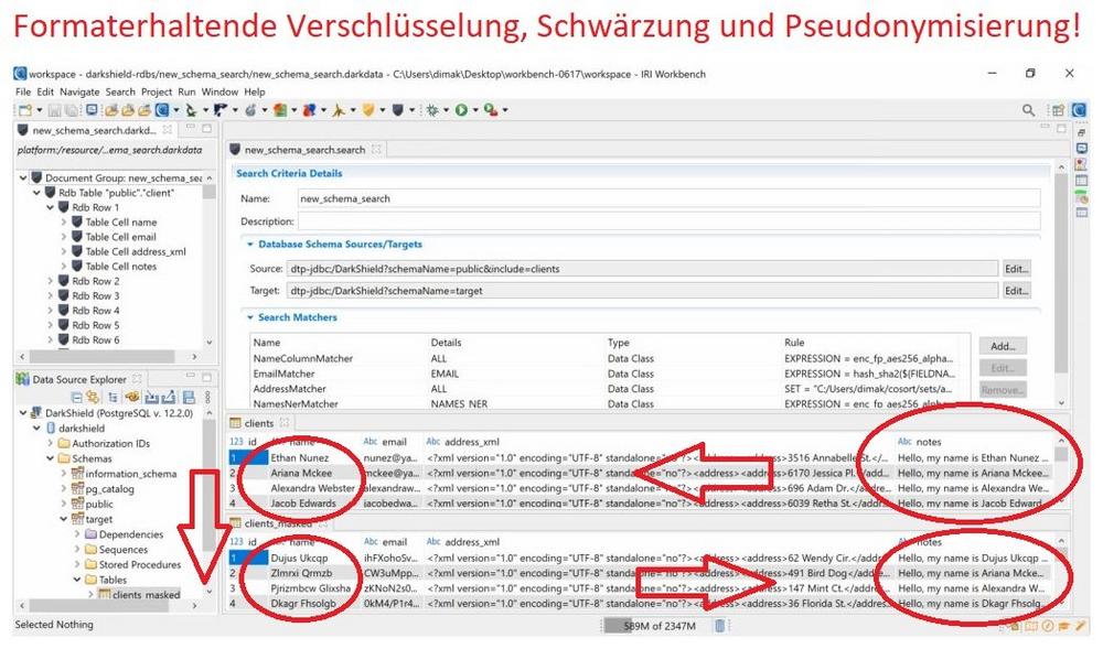 IRI FieldShield: Finden, klassifizieren, maskieren und risikobehaftete PII über Legacy-Dateien, relationale und NoSQL-Datenbanken, Cloud-Anwendungen usw. mit AES-256 FPE, Hashing, Redaktion, Pseudonymisierung, Tokenisierung usw. Details hier.