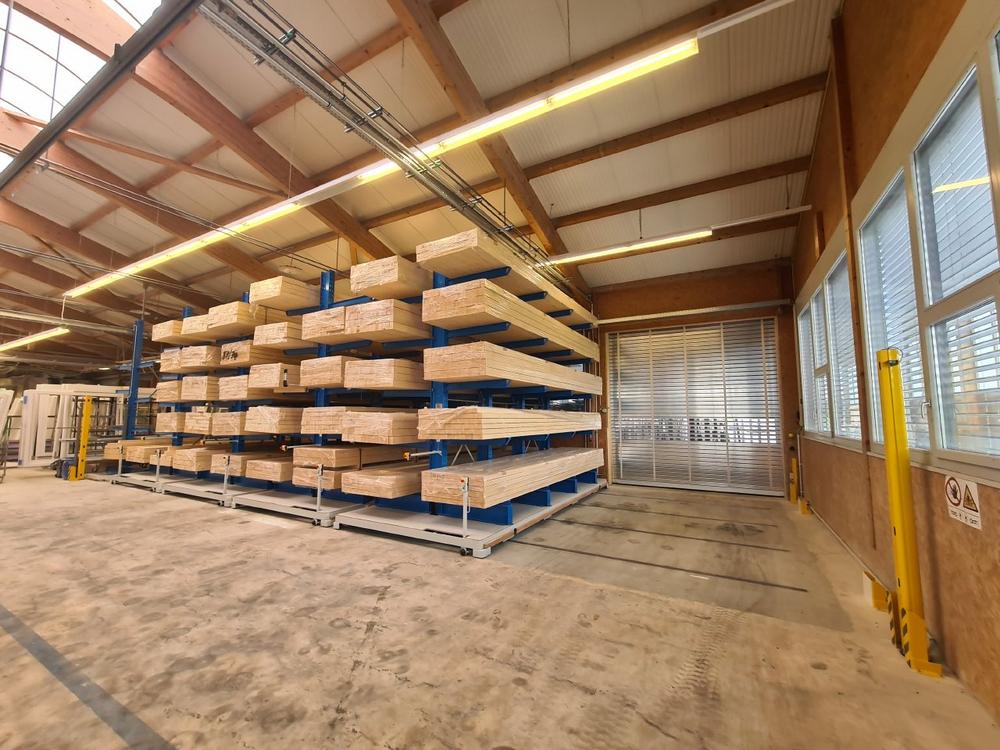 Die im August 2020 in Betrieb genommene Regalanlage bietet sowohl das benötigte Plus an Lagerkapazitäten, als auch eine insgesamt deutlich effizientere und komfortablere Holzentnahme.