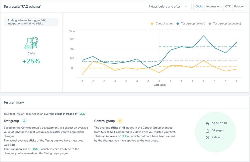 - Its smart algorithms mean that natural fluctuations due to Google Updates or marketing campaigns do not impact test results – as the feature calculates the expected value of the test group i.e. what would have happened if no changes had been made.