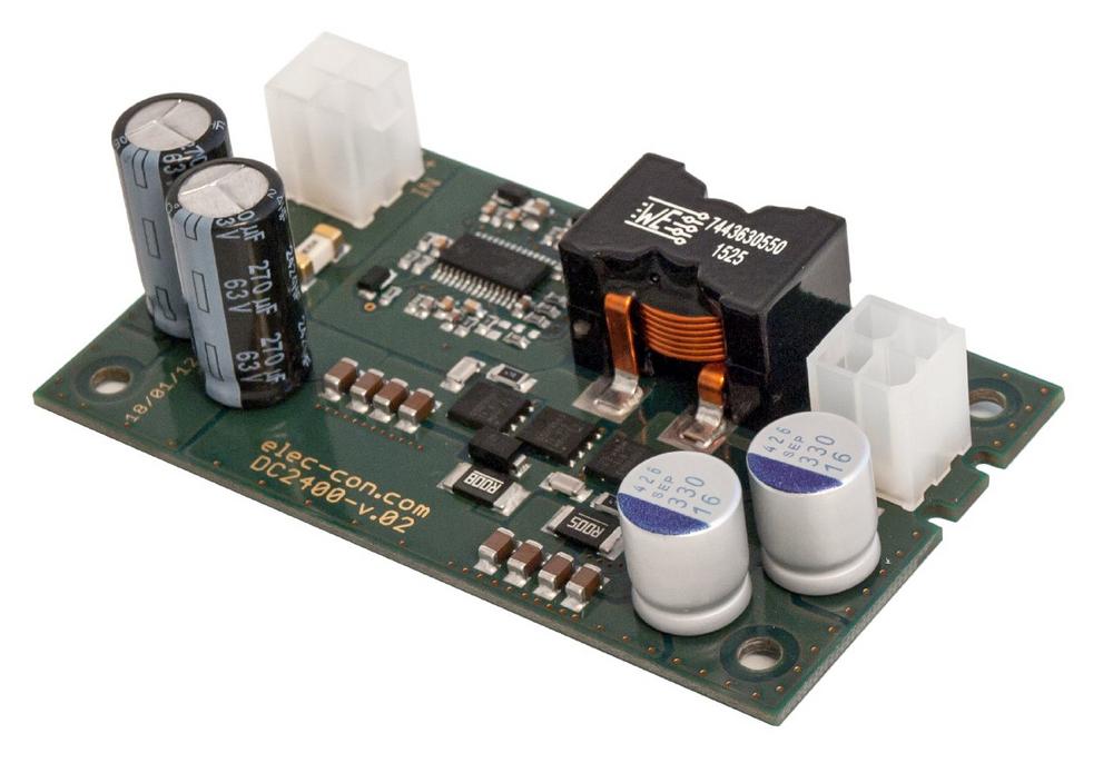 Die Platine entspricht UL94V-0. Der Formfaktor von 79 x 44,5 x 24 mm sowie die identische Lage der erdfreien Befestigungs­bohrungen erlaubt den direkten Austausch gegen einen (günstigeren) reinen Hoch- oder Tiefsetzsteller ohne Design-Änderungen. Durch seinen Temperaturbereich bis +50 °C ungekühlt und ohne Derating kann ein DCBBxx-110 wertvollen Bauraum in Geräten einsparen, indem er vorhandene Lösungen mit Kühlkörpern ersetzt.