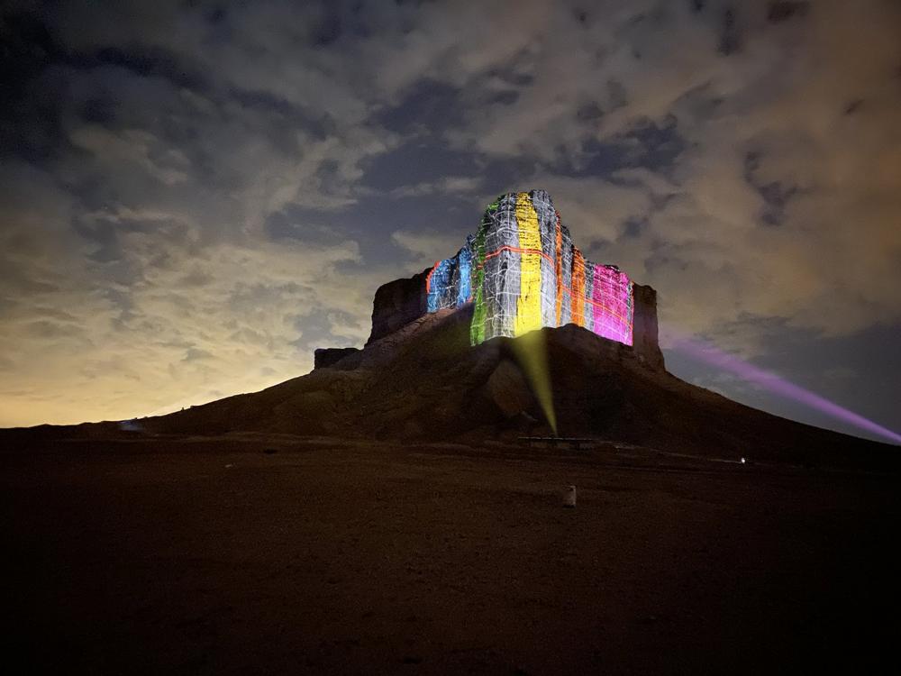 Demanding projects with the use of a multitude of projectors and 3-dimensional surfaces such as buildings or mountains thus become a manageable challenge. The implementation of the mapping project in QIDDIYA with 84 high-performance projectors caused absolute fascination among the audience.