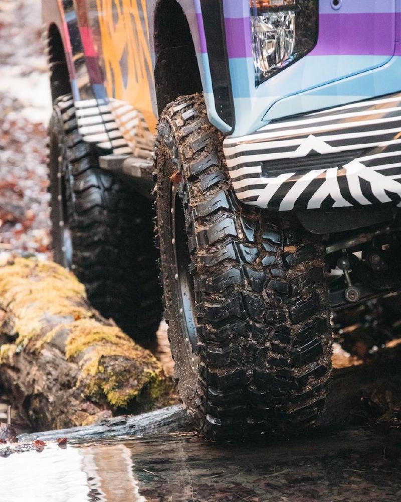Das hauseigene Höherlegungs-Kit bestehend aus dem Body-Lift-Kit (100 mm) und dem Suspension-Distance-Kit (40mm) bringen das Beast um satte 140 mm nach oben. In Kombination mit der Radhausverbreiterung (je Seite 40mm) und den massiven Klassik_B 9,5×18 Alufelgen mit Mickey Thompson Baja BOSS in der Größe 35×12,5 R18, bieten Sie genug Bodenfreiheit auf dem Weg durchs Freilichtmuseum. Nicht nur eine verbreiterte Optik sondern vor Allem Schutz bieten die schwarz mattierten Rockslider.