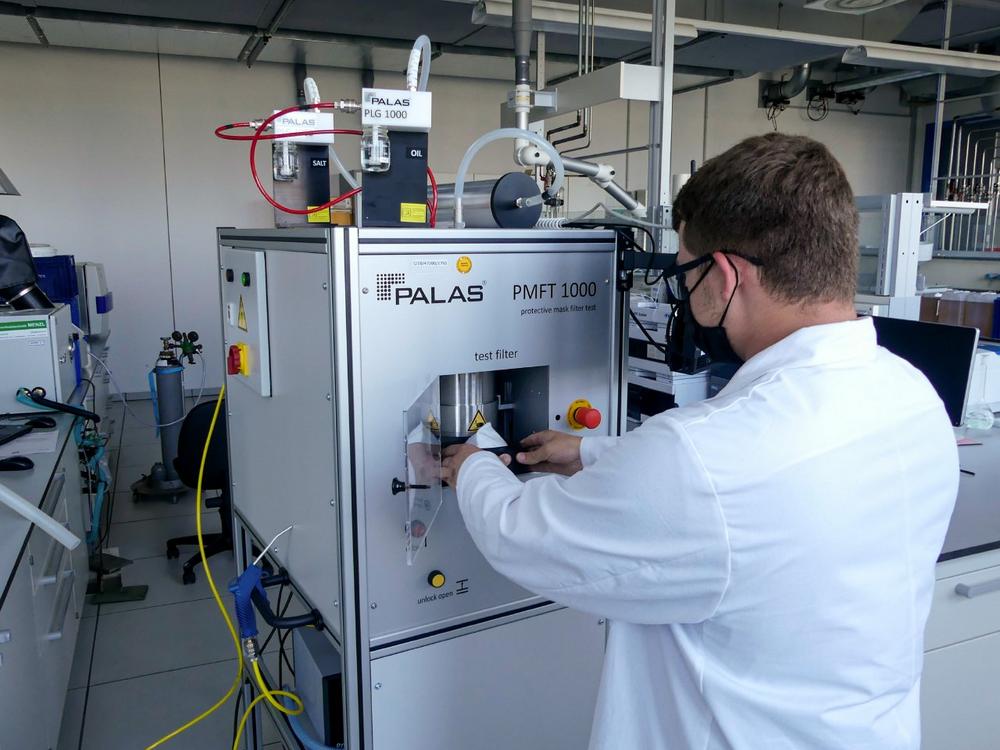 Zur Prüfung von Atemschutzmasken nach dem Prüfgrundsatz für Corona-Pandemie-Atemschutzmasken (CPA) hatte das SKZ bis dato nur die Möglichkeit, den Durchlassgrad mit Paraffinöl-Aerosol zu prüfen. Mit Hilfe eines neuen Prüfgerätes können ab sofort den Kunden erweiterte Prüfmöglichkeiten angeboten werden.