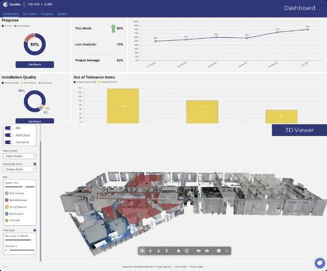 „In unserer Lösung verbinden wir innovative 3D-KI-Technologie mit mehr als 150 Jahren an Prüf- und Inspektionskompetenz, um mit Hilfe von Laser- bzw. LIDAR-Scans automatisch Informationen zum Baufortschritt in Echtzeit bereitzustellen“, erklärt Zara Riahi, CEO von Contilio. Die Grundlage dafür sind die intelligente Erfassung aller Architektur-, Tragwerks-, TGA- und Ausbauelemente in 3D-Baustellendaten und der automatisierte Abgleich dieser Daten mit dem BIM-Modell und dem Zeitplan. „Unsere KI-Software verfügt über entsprechende Schnittstellen zu handelsüblichen LIDAR-Kameras und LIDAR-Drohnen und kann auf diese Weise den Baufortschritt und die Ausführung der TGA bei Bau- und Infrastrukturprojekten automatisch nachverfolgen“, so Zara Riahi. Zudem besteht durch den automatisierten Abgleich die Möglichkeit, den digitalen Zwilling kontinuierlich zu aktualisieren und Abweichungen von den Planungen oder Mängeln in der Ausführung der Gebäudetechnik zeitnah zu entdecken und abzustellen.